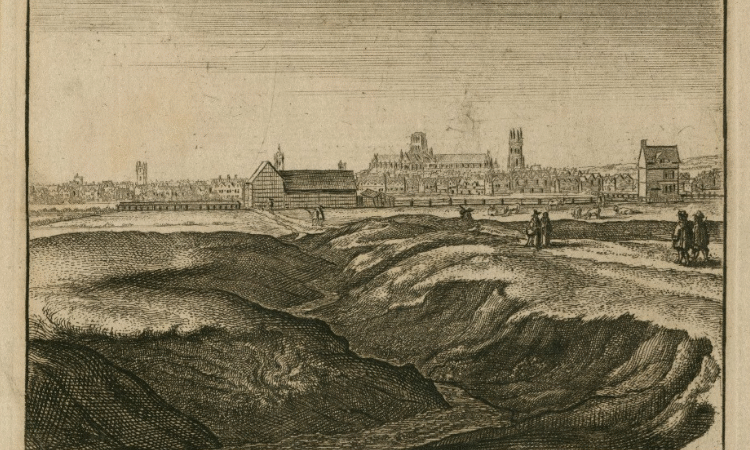 Engraving of Islington, looking south towards London, by Wenceslaus Hollar, C. 1640s. Image Courtesy of the Folger Digital Image Collection