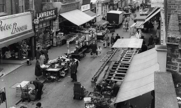 Old school market selling everything from handbags to flowers